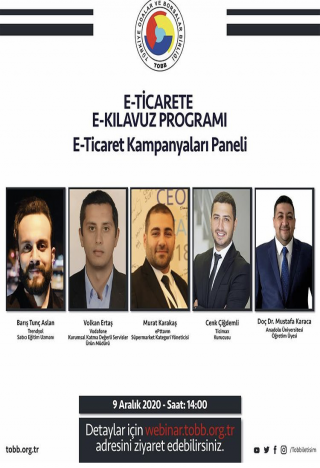 Birliğimiz organizasyonu ile gerçekleştirdiğimiz E-Ticarete E-Kılavuz Eğitimleri, 9 Aralık Çarşamba günü saat 14.00-16.00 aralığında “E-ticarette Kampanyaları” oturumuyla sona eriyor.