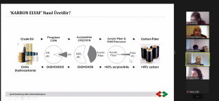 GEBKİM MTAL Müdürü Sayın Hakan Çelik başkanlığında 26 Ocak 2021 tarihinde, 9 kimya öğretmeni ile gerçekleştirilen eğitimde kompozit sektörünün çok önemli takviye malzemesi olan karbon elyafı üreticisi DowAksa İleri Kompozit Malzemeler San. Ltd. Şti. ‘nin Satış ve İş Geliştirme Müdürü Sayın Koray Özatay moderatörlüğünde DowAksa Şirketi’nin faaliyetleri hakkında ayrıntılı bilgi verilmiş, karbon elyafı takviye malzemesinin üretimi, performansı ve kullanım yerleri ile ilgili teknik bilgiler paylaşılmıştır. Karbon elyafı takviye malzemesinin türleri ve uygulama alanları örnekleri ile tanıtılmıştır.